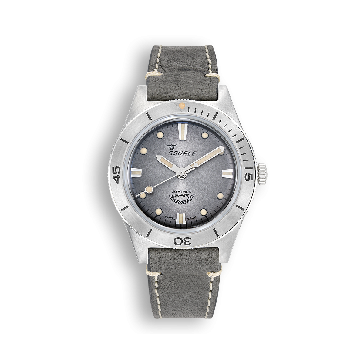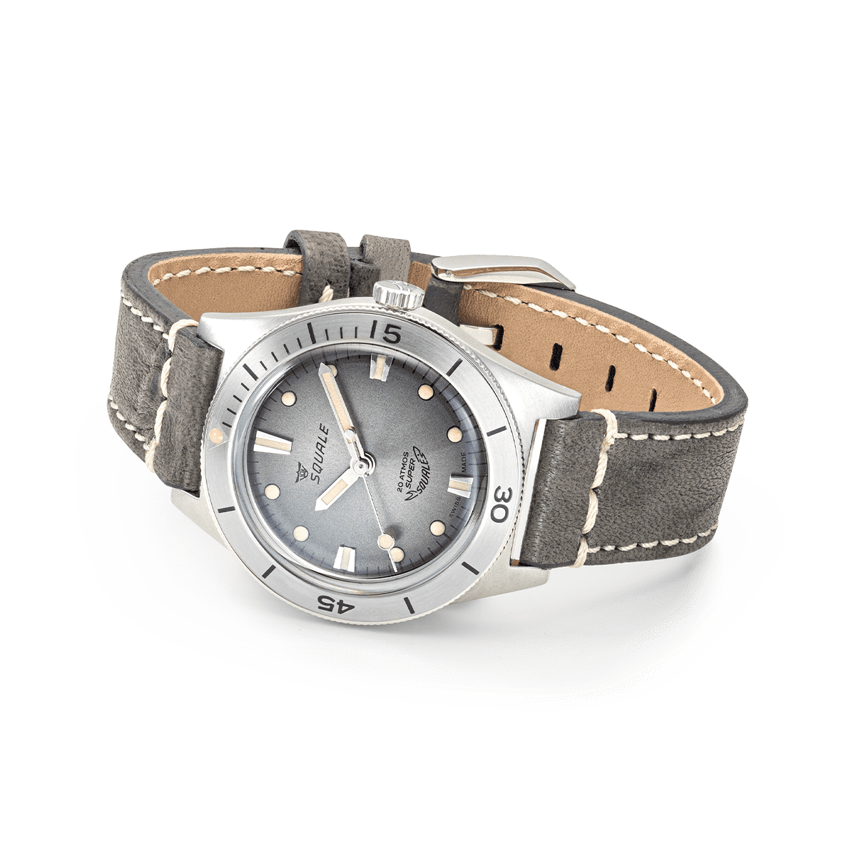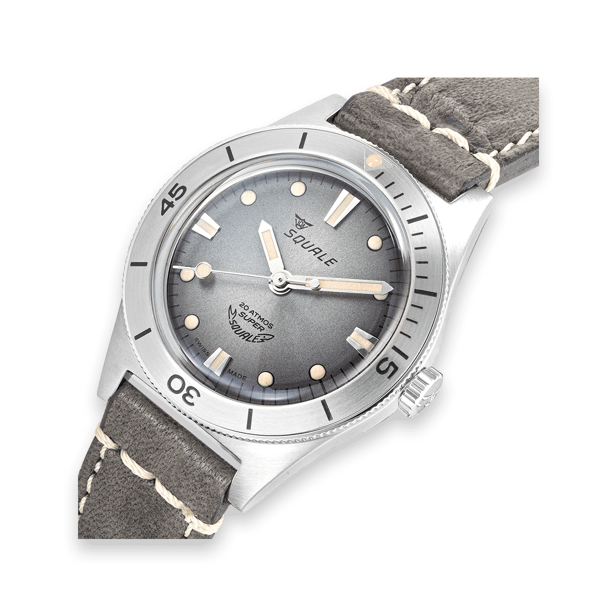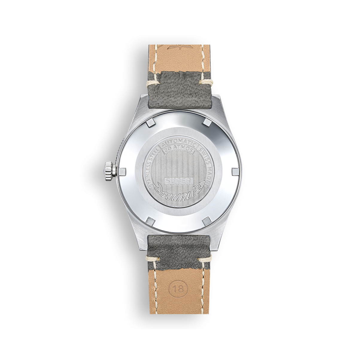 Il modello Super Squale nasce come un vero e proprio skin diver: con resistenza all’acqua di 200 metri, 38 millimetri di diametro cassa e solo 45mm di lunghezza, il Super Squale è stato pensato per essere il meno ingombrante possibile durante le immersioni, con o senza la muta.