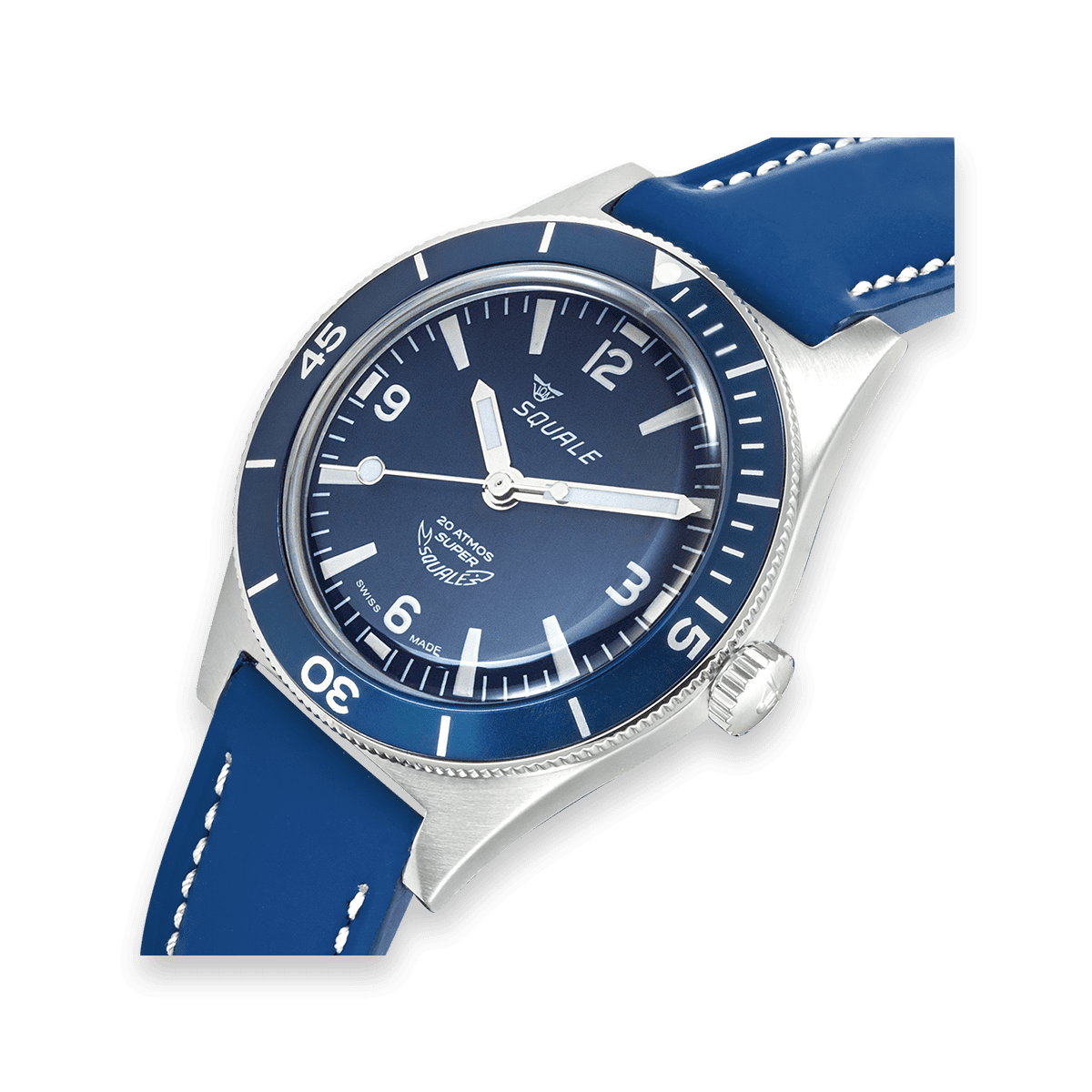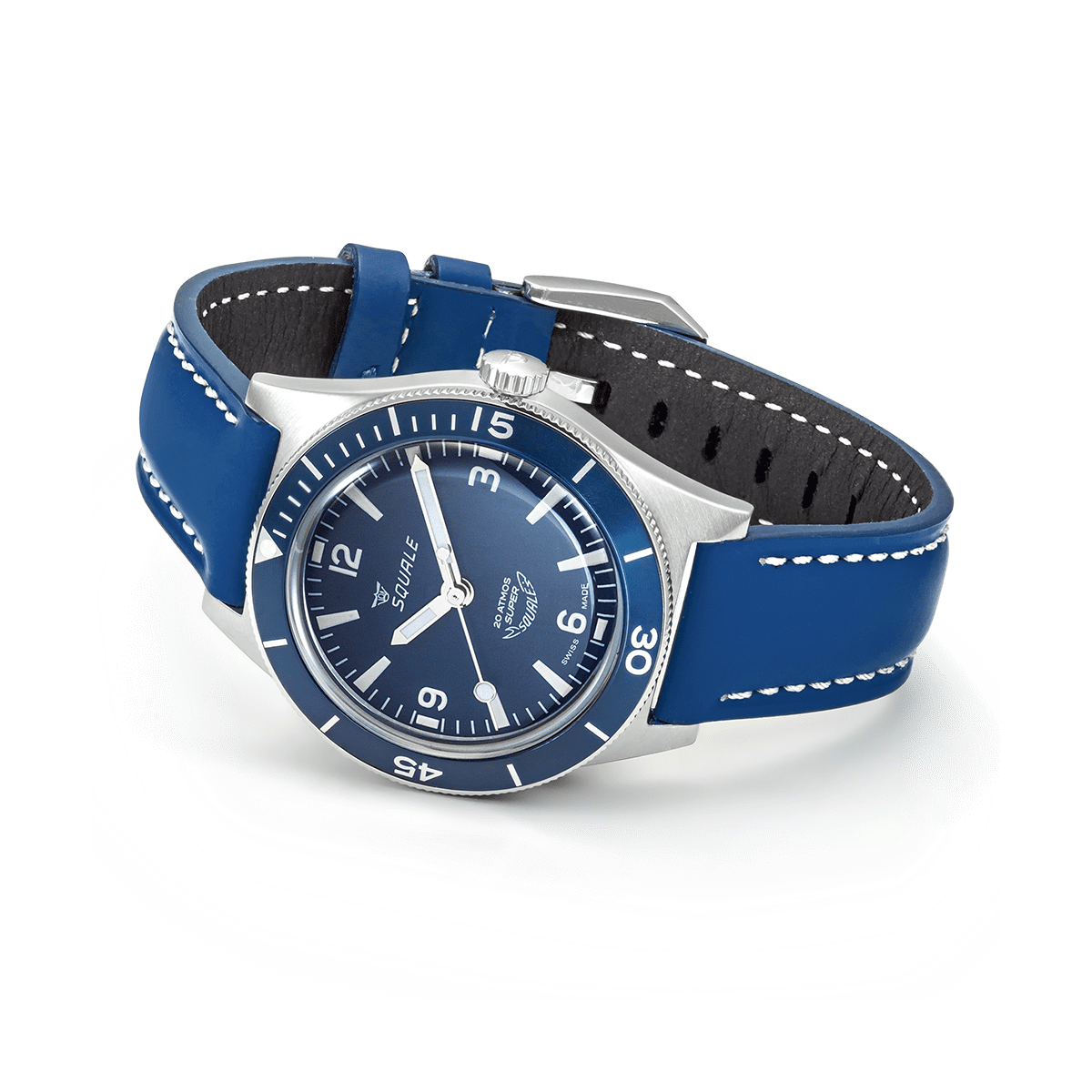 Il modello Super Squale nasce come un vero e proprio skin diver: con resistenza all’acqua di 200 metri, 38 millimetri di diametro cassa e solo 45mm di lunghezza, il Super Squale è stato pensato per essere il meno ingombrante possibile durante le immersioni, con o senza la muta.