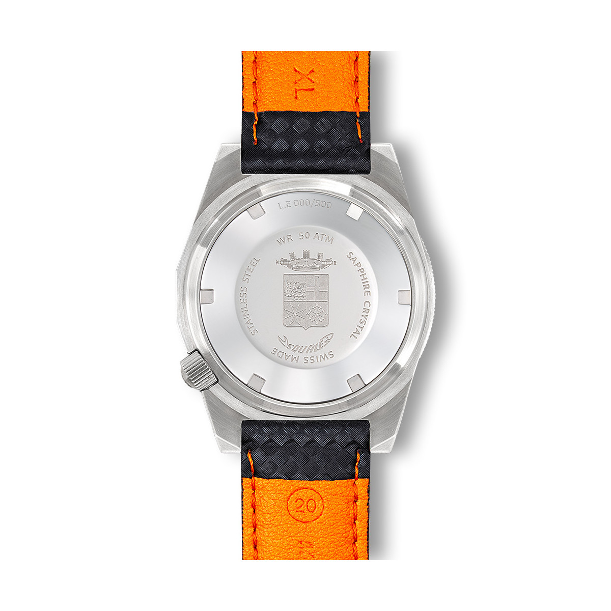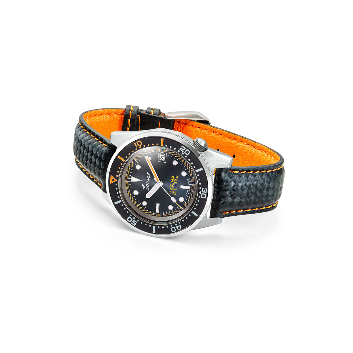 Il logo ufficiale della Marina Militare è arancione, così come le iconiche lancette dei minuti degli orologi subacquei Squale, specialmente i 1521. Alle ore 6 si trova il logo della Marina Militare in arancione, così come la minuteria sul quadrante attorno al rehaut.